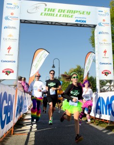 Dempsey gave generously of his time at the starting line stage. He joked and chatted with the waiting crowd of 5K and 10K runners and walkers as the clock approached the 7 a.m. start time, and he stayed around to sign autographs and pose for pictures.