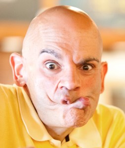 To embrace the character he fondly calls Hank, Antreassian wears a black suit and a latex and gauze mask that makes him look like a freshly laundered mummy.