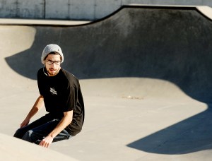 Josh Goodman of Auburn carves at the skate park in Lewiston on Monday.