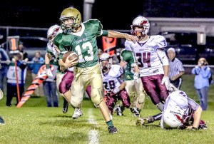 Windham fumbled on the kick off and senior Ian Lejonhud jumped on the ball at the Eagles’ 38-yard line. Oxford Hills moved to the 32 where Davis Turner took the pitch and broke free for the touchdown. Ryan VanDecker’s extra-point kick was good.