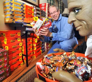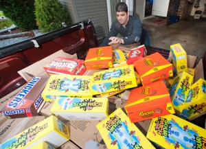 By Monday, Geiger had bought 4,000 giant- or king-sized bars, an increase from last year’s horde of 3,000 bars. In 2012, he passed out 2,500.