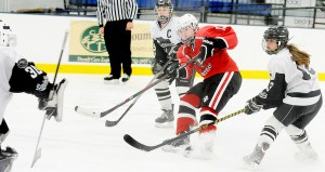 “The girls did a lot of the good things we’ve been working on,” Red Hornets coach Shon Collins said. “I thought in the offensive zone we did some cycling, some give-and-goes. We had the triangle set up well and we knew coming into it they were an undermanned squad with only 10 skaters. The message to the girls was get out there and put the pressure on. We were able to roll three lines right from the beginning, really wear them down.”