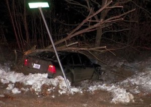 An emergency medical technician from Bethel came upon the scene and radioed that the driver had head lacerations and his passenger, Mckayla McCrum, 21, of Manchester, N.H., had a severe hand injury.