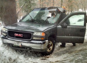 Fryeburg police said it appeared the truck may have been traveling too fast for road conditions. The truck was impounded and will undergo a forensic analysis.