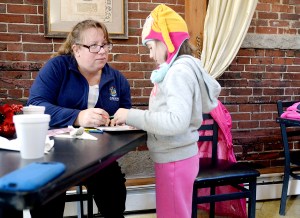 Jeff Wilkins, of Lafayette Street, brought daughter Anna, 10, to Monday’s meeting to talk to officers.