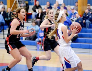 After a Mulherin basket, Prue sank a free throw and Sadie Goulet converted a steal for a 10-9 lead. Prue hit a jumper. Kayla Veilleux scored off a turnover, and Mulherin hit a corner jumper for the 16-9 lead after the first.