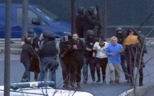 At least seven people were killed Friday — the three terrorists and at least four hostages — a policewoman was killed Thursday and 12 people were massacred in the Paris newspaper attack Wednesday. Sixteen hostages were freed Friday, one from the printing plant where the two brothers were holed up and 15 others from the Paris grocery store.