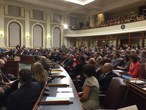 The governor spent the bulk of his roughly hourlong speech on the budget, which he said would “drive prosperity for years to come. It looks past the next election and focuses on the next generation.”