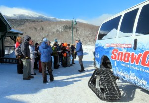 After getting back to the base of the mountain, Howie Wemyss, general manager of the Mt. Washington Auto Road, described the triangulation of the SnowCoach wheels as the students took notes.