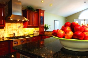 Wood countertops create a warm, homey interior. Butcher block counters are less expensive than granite and do not necessarily need to be ordered from a speciality retailer. But wood can stain and dent and can even burn when hot kitchenware is placed atop it. Regular application of oil can help homeowners maintain the appearance of their wood counters for years to come.