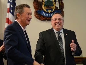 AUGUSTA — Flanked by Ohio Gov. John Kasich, Gov. Paul LePage said Thursday he would push Maine lawmakers to pass a resolution urging Congress to create an amendment to the U.S. Constitution that would require the federal government to maintain a balanced budget.