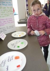 “My project was to see if gummy bears would grow in these three substances,” the Woodstock Elementary School fourth-grader said. “And they all grew.”