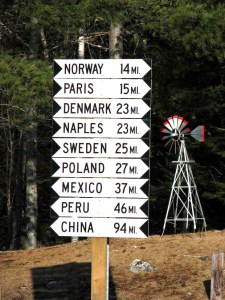 The article states, “Maine has a large number of towns named for foreign cities and countries. Just north of Denmark, Sweden and Norway are Madrid, Mexico and Peru. Belfast is on the coast and Stockholm is minutes from the Canadian border. There’s a China and a Poland. And for a state with very few people of Italian ancestry, Maine has quite a few towns named for cities in Italy: Rome, Verona, Sorrento, Palermo and Naples.”