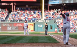 Red Sox right fielder Shane Victorino played his first game against the Phillies since he was traded to the Los Angeles Dodgers on July 31, 2012. He received a standing ovation before his first at-bat.