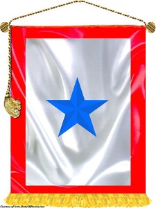 The service flags are white with a red border and have a blue star in the center to signify each family member deployed.