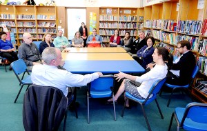 LEWISTON — Maine’s acting education commissioner, Tom Desjardin, visited teachers at Montello Elementary School on Thursday to talk about testing and the letter grades the state gives schools.