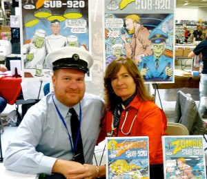 Dressing the part: Shortly after we came up with the idea for “Z-SUB,” Michelle and I found ourselves at an antique mall where a much older fellow was selling this Navy cap. He said it had belonged to his long-dead son who was once an officer aboard a submarine. I bought it for $5. At first it just sat in the studio as inspiration, but when we did our first debut of issue #1 in Portland (November 2013) I decided I was going to wear it. Michelle got the giggles seeing it atop my big, swelled head and decided to join in the fun and get a stethoscope, and so it has just become a part of our routine. We have fun making our comics, but I think we have even more fun selling them to people and getting to act like kids again.