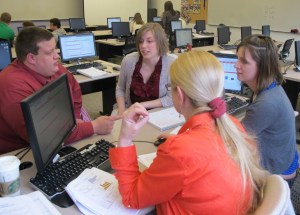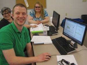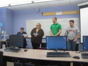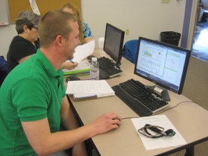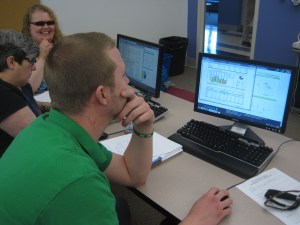 In Henry’s classroom Thursday, Allen, 22, of Turner sat at the Baldwin computer, going over charts and graphs for asset turnovers, supplies, emergency loans, sales, research and development, leftover cash and profits.