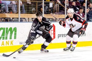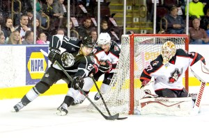 The Monarchs grabbed their first lead of the contest at 5:28 of the second period when Sean Backman’s rebound came out to Jordan Weal in front. Weal was all alone and he snuck a shot underneath the crossbar for his series-leading fourth goal of the playoffs.