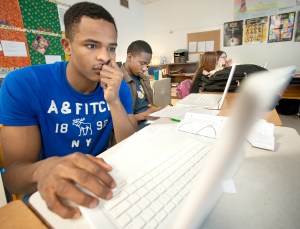 She and three other teachers share a cart of 25 laptops for four classes. Not the best way, experts say, to teach students who’ll be using computers in the workforce.