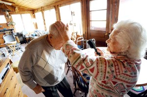 She’s 90, he’s 93. They live in the oldest house in Greene, built in 1798. They talk about slowing down, making adjustments such as moving to the first floor, then talk about their tractor and Bert’s eagerness to get his garden going for the year.