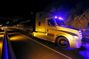Daimler Trucks North America LLC debuted the self-driving big rig Tuesday night with a drive — and a driver steering — atop the Hoover Dam on the Nevada-Arizona border.