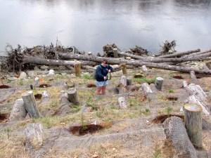 The work included using a system of rocks, tree root-wads and wood pilings to hold back the bank and to capture sediment washed into the system from the river. The work site was 400 feet along the bank.