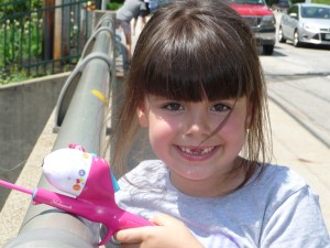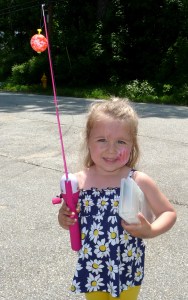 Five-year-old Breanna of Norway said she enjoys casting her worm-baited line and made some very long casts with her hot pink fishing pole. Her mother said Breanna and her 8-year-old sister, Sierra, go fishing a lot with their grandfather.