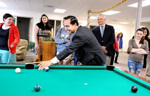During a short tour of the New Beginnings emergency shelter on Main Street, Collins and Castro spoke with teens and young people to learn more about how the programming and support has helped them turn their lives around.