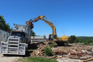 Nearby, an excavator loaded debris into a tractor-trailer from a barn, one of several barns Michael Raitto, a project supervisor from New York contractor Calamar, said would be removed over the next week.