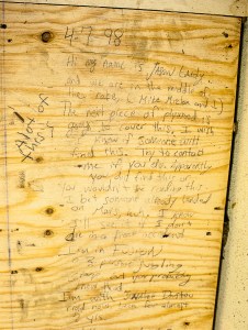 BUCKFIELD — The message scrawled onto the plywood panel beneath the seating at the former Oddfellow Theater predicted a few things about the future: drolly, that another piece of plywood would cover it up; and that someone would land on Mars, which the the author would live to see if they didn’t first perish in a freak accident.