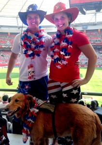 Christy Gardner and Mariah Carrier — and Moxie, Gardner’s service dog — were among the more than 50,000 fans packed into BC Place to watch the U.S. Women’s soccer team defeat Japan 5-2 to win the World Cup for the third time, and first since 1999.