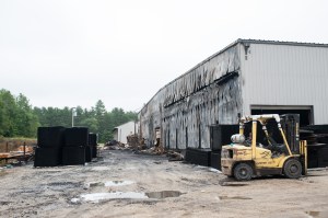 The fire burned much of the wood stored there — the company had just taken delivery of several units of wood — and the lean-to structure. It also warped the metal siding on the north end of the building.