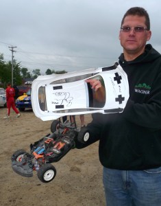 Kevin Ondre built an HPI WR8 remote-control race car modeled on rally racer Brendan Reeves’ 2015 M-Sport Ford Fiesta R2. Ondre took the plastic body off the chassis and Reeves autographed the underside of the body’s roof.