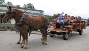 Two draft horses, Tim, 14, and Prince, 8, each weighing 2,350 pounds, gave wagon rides around the downtown area as local historian Paul Mills provided a narrative on different sites along the way.