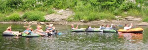 Inflatables, decorated canoes and one unique alternative watercraft created by Micheal Titus and Bretton Mosher-Clark set out for the approximately four-mile float down the river to the train trestle area. The unique watercraft made of swimming noodles won for most original vessel.