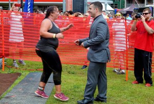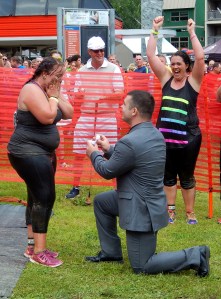 For morning racer Christopher Parish, 26, of Sanford, everything fell into place at noon in one sublime moment in front of thousands of people when his girlfriend, Oxford Hills native Krystal Powers, 25, of Sanford, crossed the finish line.