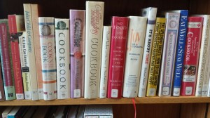As often happens in a library, our talk of an anticipated addition of a “café” turned to books, specifically, cookbooks. David showed me the present collection and new additions waiting to be catalogued and find their rightful place. There are the old standbys of familiar chefs Julia Child and Martha Stewart, as well as newcomers. I caught a glimpse of a newer version of one of my old favorites, “The Joy of Cooking”.