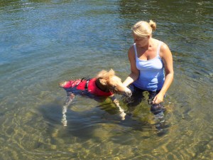 The first sessions were held in a 100-gallon livestock watering tub at the farm, according to Brenda Green. A few weeks ago, the sessions were moved to the boat launch dock at Clearwater Lake. Exercising in the water offers a low impact way to get the foal to move her legs while keeping the foal’s full weight off her legs, Nichols said.