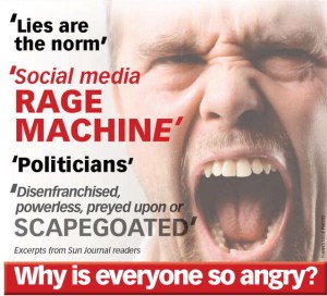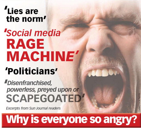 In a recent reader query, the Sun Journal asked why people were angry. Responses ranged from America’s dealings with Iran to radio programs being suddenly canceled. There was no common theme.