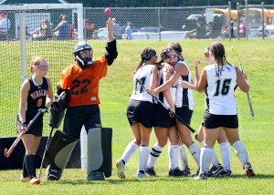 “Our three backs have just done a fantastic job all year,” Ward-McLean said. “With Chantel (Eells) leading in the middle, and Kaitlyn DeBlois on one side and Alivia Bubier on the other, they’ve just done a really good job of clearing those long hits that come flying through. And with Kierstin (Leclerc) playing a little more defensive for us this year, and she’s done a good job, and Alana Hartford. They all did well to get their sticks on a lot of opportunities Winslow had.”