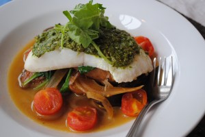 The baked haddock, says Walton, “is definitely a staple.” According to Farrar, “The haddock is topped with pesto, baked in white wine and served over locally grown, roasted, tricolor new potatoes, caramelized onions, fire-roasted tomatoes and spinach in a light saffron broth.” Adds Kup, “The pesto and saffron make it really bright in flavor.”