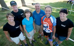 The Downeast Cyclocross Race at Pineland Farms in New Gloucester was held on Sept. 12. The event raised $5,000, and the proceeds were donated to the Veterans Adaptive Sports & Training (VAST) program at Pineland. Pictured, from left, are VAST Director Kristina Sabasteanski, VAST volunteer Rob McAleer, Darlene Beach of The Iberdrola USA Foundation, Pineland Farms Outdoor Recreation Director Matt Sabasteanski, Rainbow Bicycle owner John Grenier and VAST volunteer Azure Meadows.