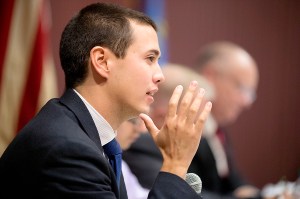 More than 200 people filled Callahan Hall for the debate, taking every available seat and standing in the aisles. Many more stood in the entrance to the hall.