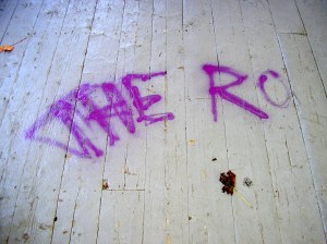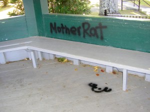 Someone noticed some activity in the gazebo about 8 p.m. and called police. When they arrived, they found purple and black lettering spray-painted on the inside of the gazebo, as well as one of the women, who was still at the scene.