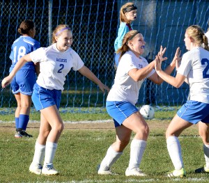 Hlister did the setting up for the Raiders’ next goal, which came 12 minutes into the second half. Her corner kick — one of 14 in the game for Oak Hill — from the right side landed on the far side of the goal mouth and right to senior teammate Jamie Prue, who didn’t miss on the 6-yard shot.