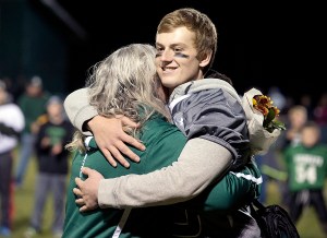 He honked the horn each time Leavitt made a big play. It was a noisy night. Leavitt amassed 613 yards of total offense. Fellow seniors Levi Craig and Max Green combined for four touchdowns through the air. Chandler Lajoie, wearing No. 55 in honor of Smith, notched a pair of quarterback sacks.