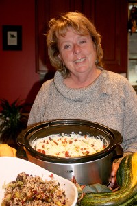Mashed potatoes can be one of the last-minute stresses. “Not for me,” laughed Sarchi. “And these mashed potatoes are amazing. They are prepared the day before with loads of sour cream, cream cheese, bacon and chives. Bring them to room temperature in the morning and reheat right in a crock pot. You not only reheat them in the serving dish, but the potatoes stay hot when family goes back for seconds.”