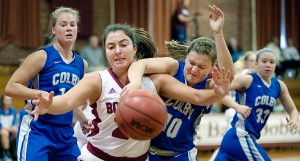 The shooting proficiency for each team went in opposite directions from the first quarter to the second. Colby made 8 of 14 shots in the first quarter, while the Bobcats made just three of their 13 attempts. In the second quarter, it was Bates hitting eight shots — on 75-percent shooting — while holding the Mules to just three.