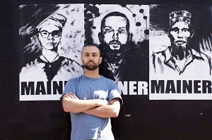 Also known as Orson Horchler, Pigeon recently installed his thought-provoking “Mainers” mural on the north wall of Java Joe’s, a business in downtown Farmington, as part of the first “Water Bear Confabulum” community arts project.